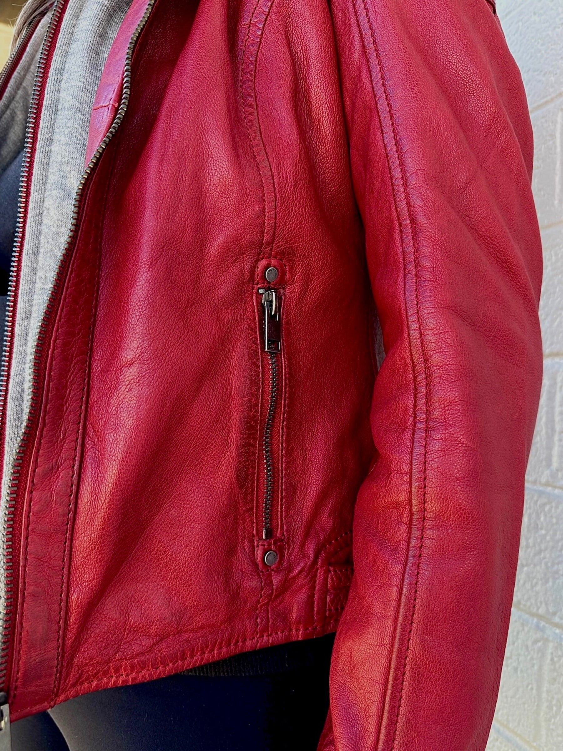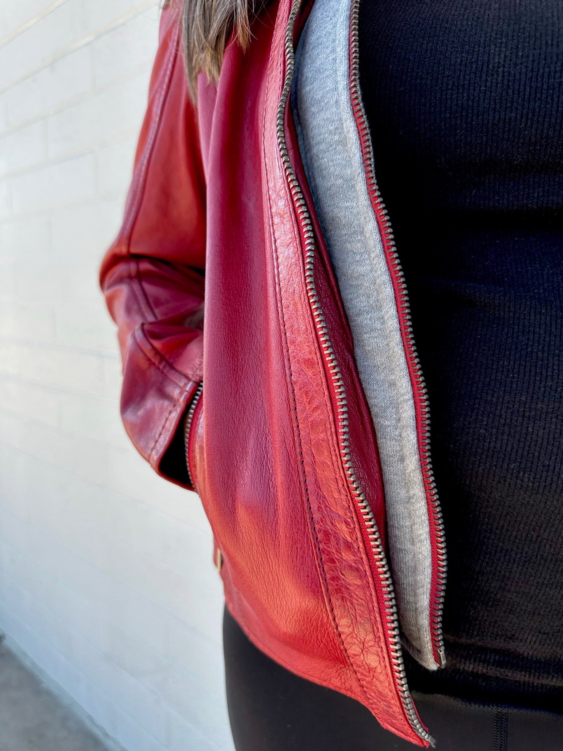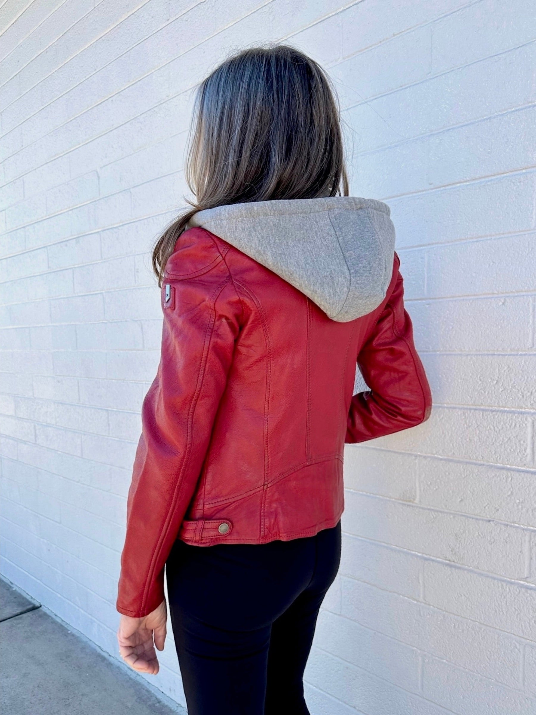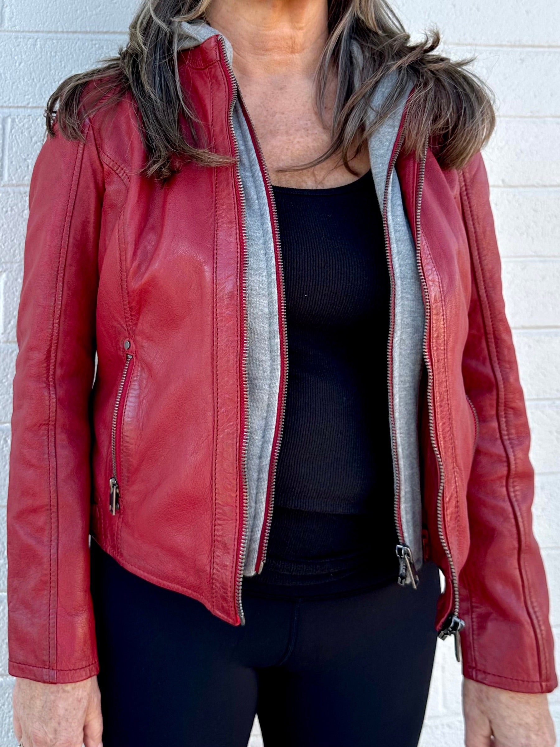 Discover the Allice Leather Jacket, crafted from lightweight 100% lambskin leather for midsize women seeking resort-ready coverage. The removable fleece hood transitions effortlessly from casual coffee runs to upscale dinners, while metal zippers on pockets and sleeves add subtle edge. Adjustable cuffs roll up or stay sleek, perfect for packing flat in carry-ons.