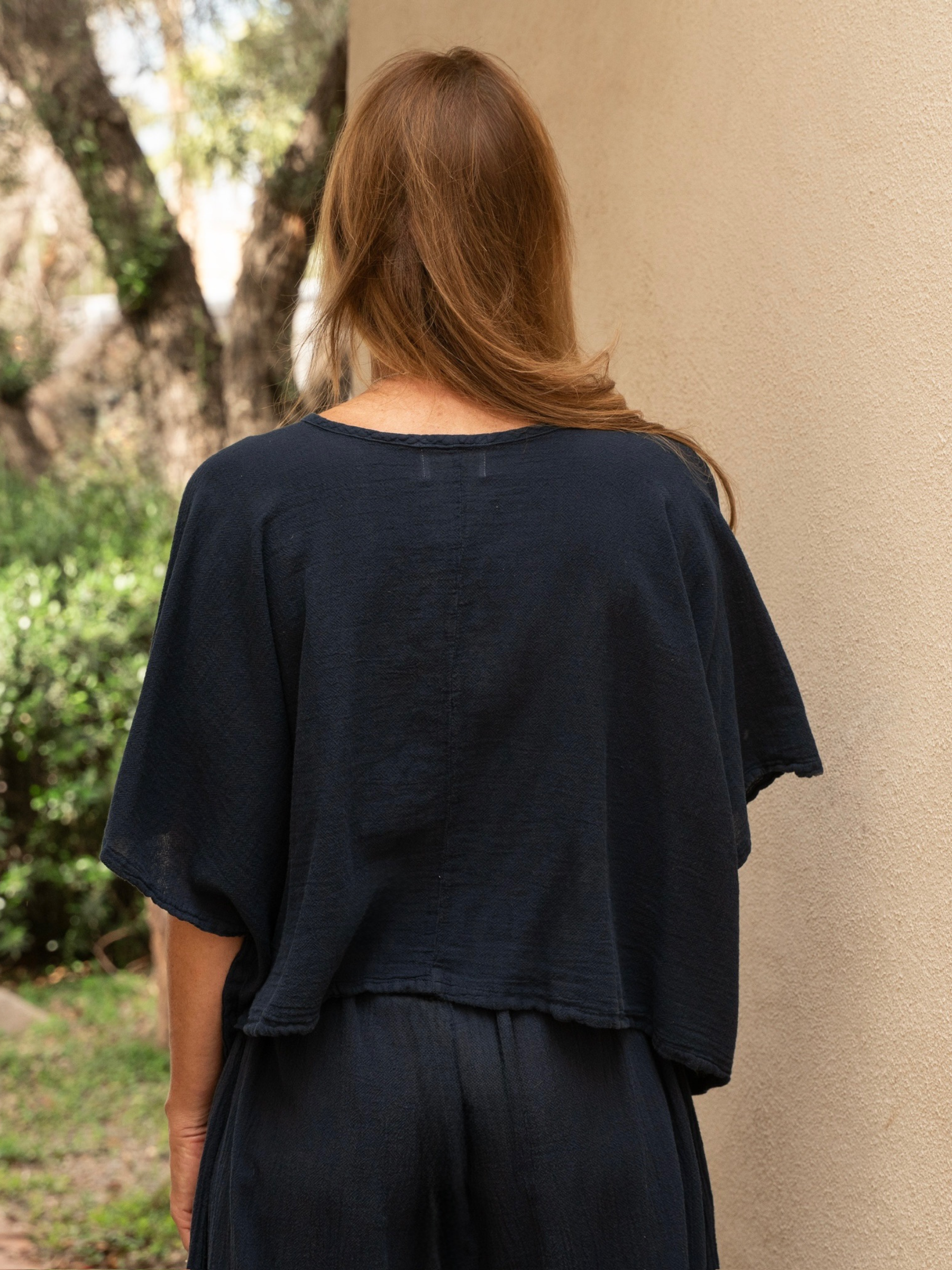 Not your basic crop, Carly brings edge and attitude. Designed to flatter your real shape, it’s shorter in the center to highlight your waist and drapes softly at the sides to skim your belly. Bold, effortless, and perfect for standing out without trying too hard.