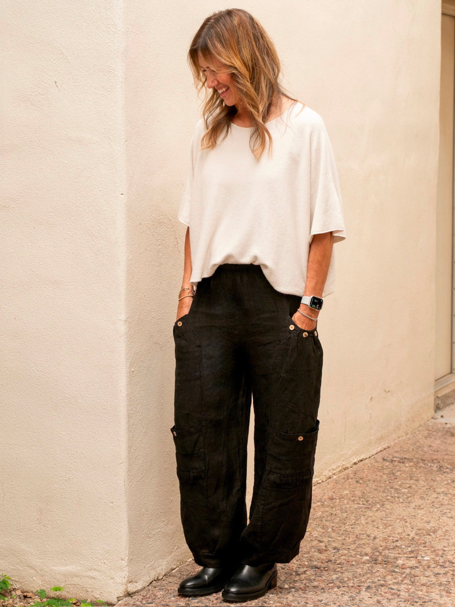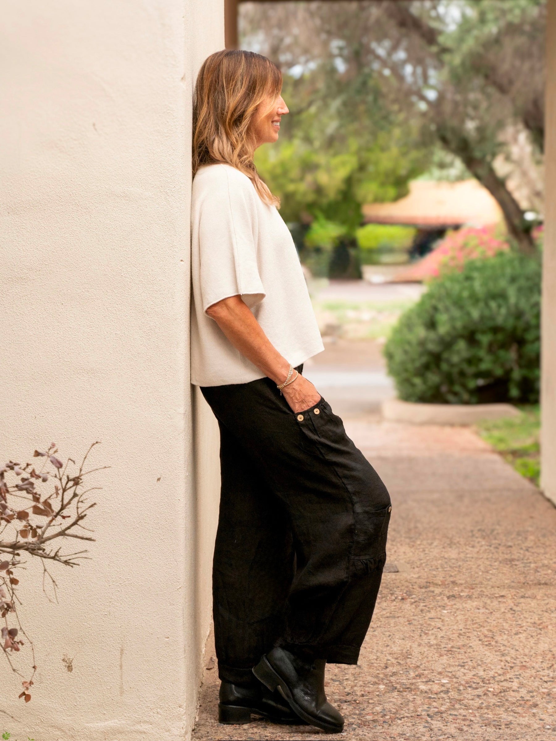The Katie Short Sleeve Sweater is the perfect knit for cooler weather, offering lightweight warmth and refined comfort. Made from soft, breathable fabric, it keeps you cozy without overheating, ideal for layering as temperatures drop. Its effortless drape, short sleeves, and timeless silhouette make it a versatile piece for transitioning between seasons, pairing beautifully with jeans, skirts, or tailored pants. This women’s sweater blends everyday comfort, style and practicality for the perfect cool-weather staple.
