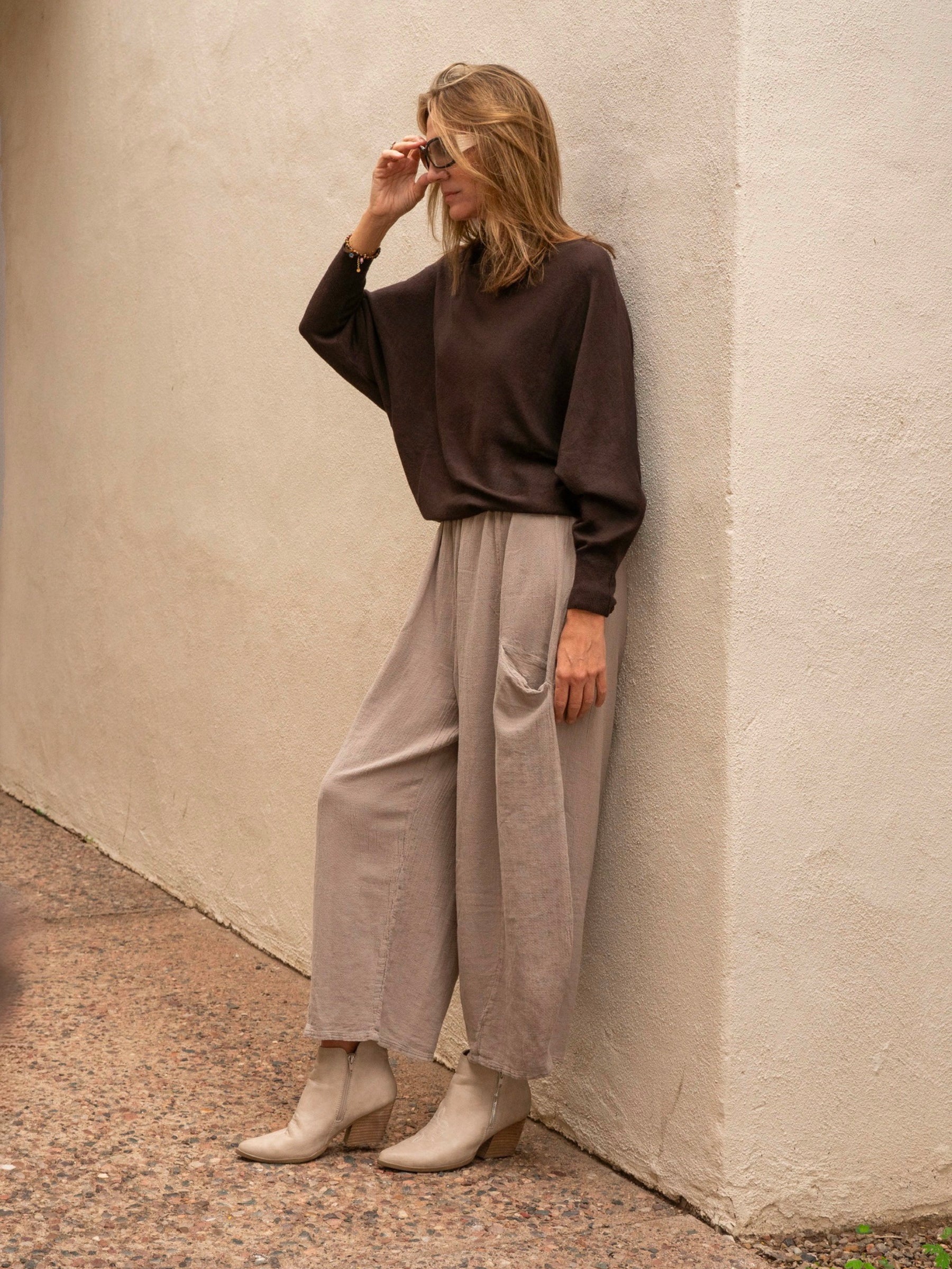 Defined by its modern silhouette and effortless elegance, the Kayla Knit Sweater is that rare find you’ll wear on repeat. Made from a soft, airy knit that feels luxurious yet breathable, it drapes beautifully through the upper body before tapering into a subtle shape at the waist and hips. The straight-across neckline highlights your collarbone with quiet confidence, while the relaxed sleeves gently narrow toward the wrist for a smooth, polished look. Lightweight enough for layering yet cozy enough for cooler days, it’s the perfect transitional sweater for women who value comfort, style, and pieces that move with them through every season.