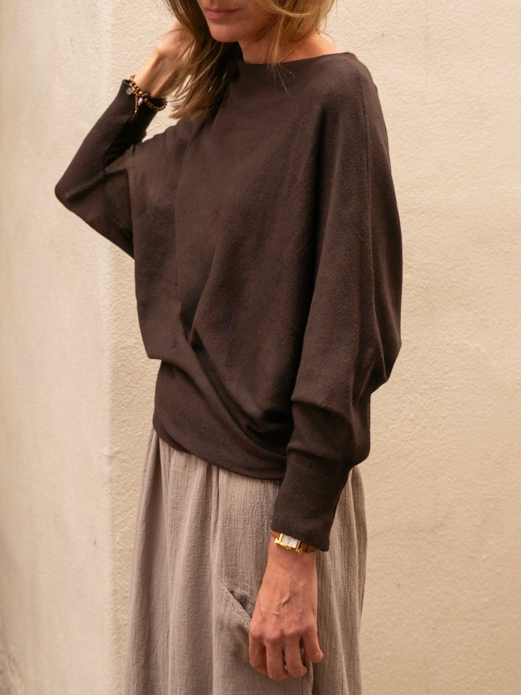 Kayla Long Sleeve Sweater Dark Brown