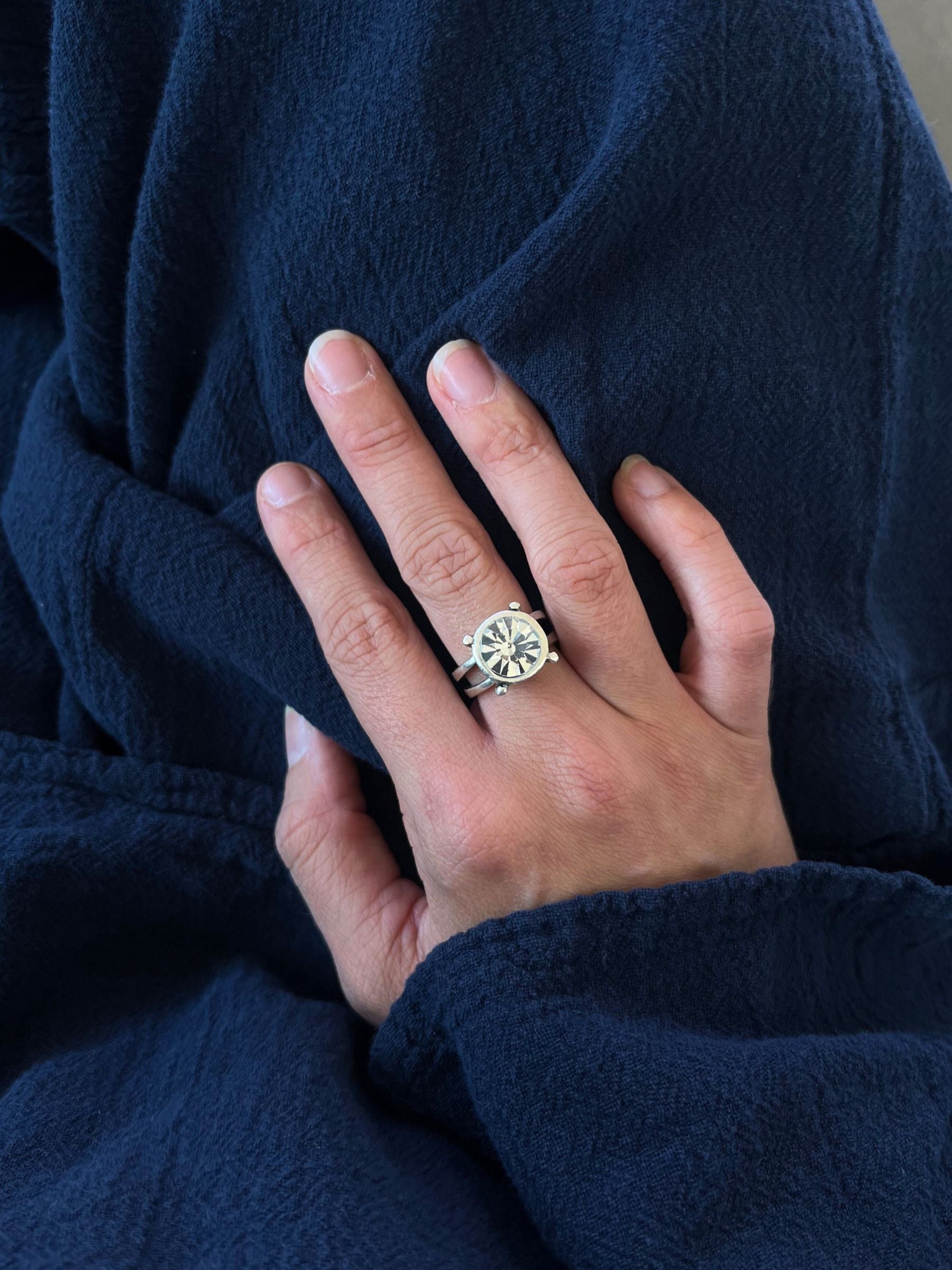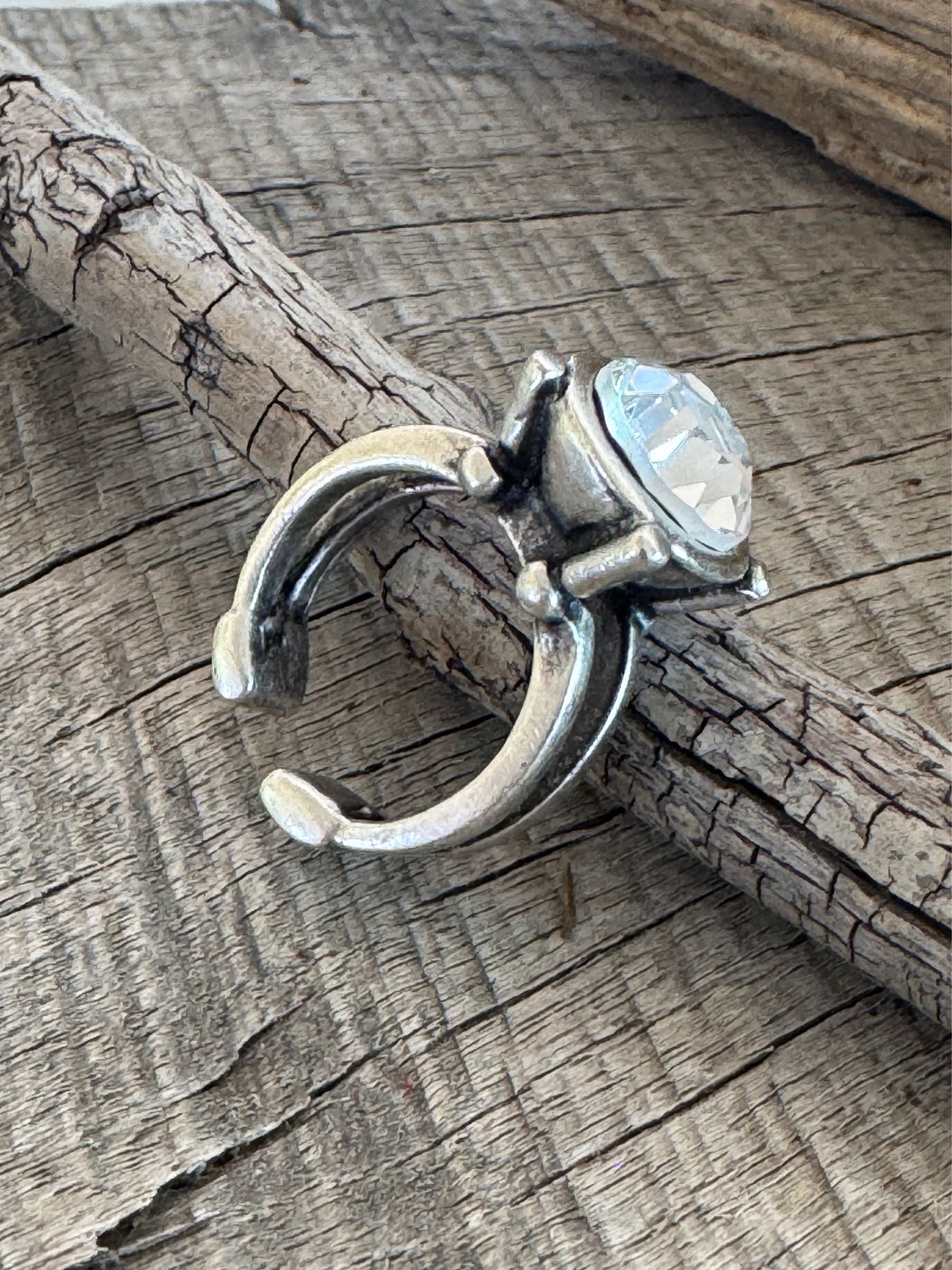 Rachel is the ring that plays well with everyone. Featuring a single, shimmering clear crystal set in handcrafted 925 silver plating, she’s designed to look gorgeous on her own and even better when paired with her friends. Use Rachel to build your own ring story: pair her with a smoky grey crystal for sophisticated contrast, add an aquamarine for a pop of coastal color, or keep it clean with a "triple Rachel" stack.