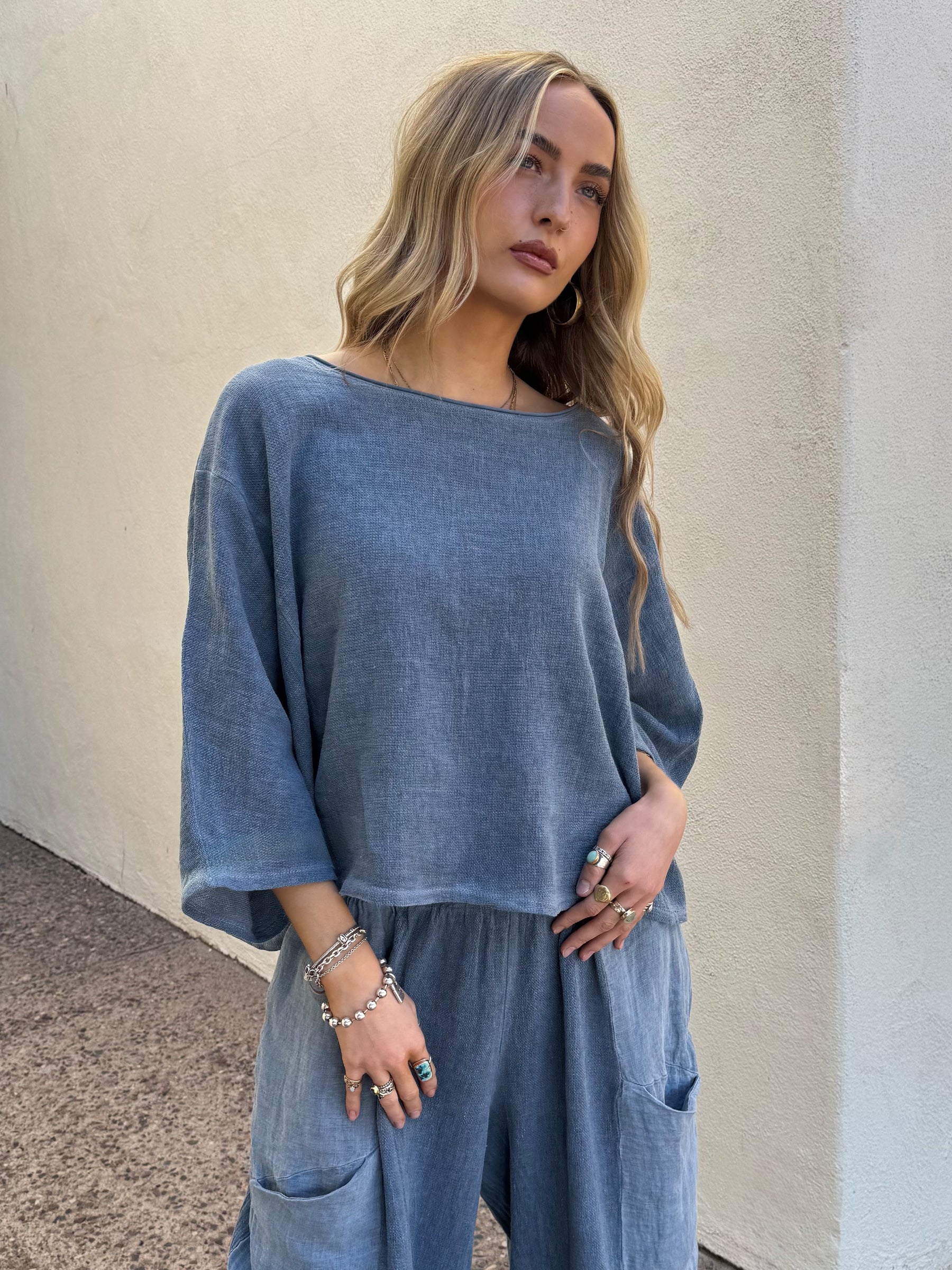 Consistently a best seller, our Rhonda Top is soft, roomy, and effortlessly put-together. With a relaxed square cut and elbow-length sleeves, it floats off the body with no clinging. Just easy, everyday style.